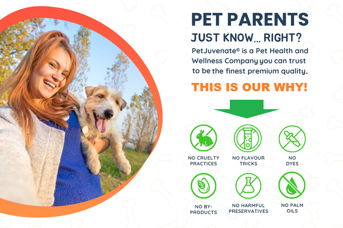 Embrace your Pupper's journey to future wellnes. Start your personal Petjuvenation experience right now! Zero Risk and Huge Potential Future Upside for your proactivity. Prevention can be a cure. Ya know?